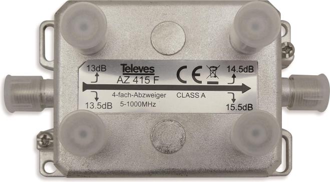 BK - Terr. Abzweiger 5 - 1000 MHz Druckgußgehäuse F - Anschlüsse AZ 1 .. F + AZ 2 .. F mit Wandabstandshalterung Brummentkoppelt durch Trennkondensatoren