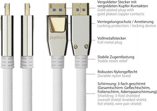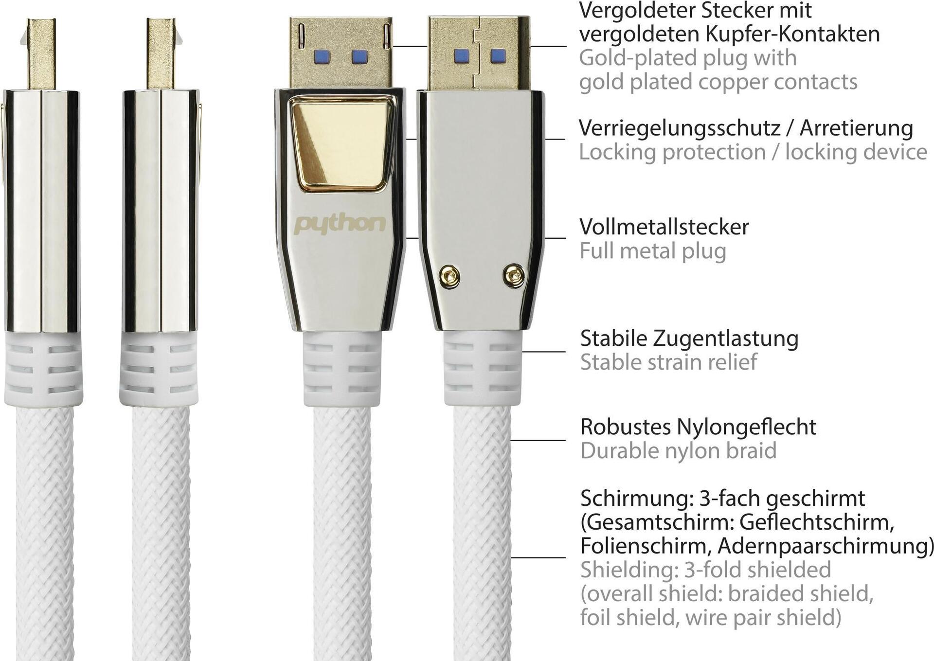 DisplayPort 2.0 connection cable with locking