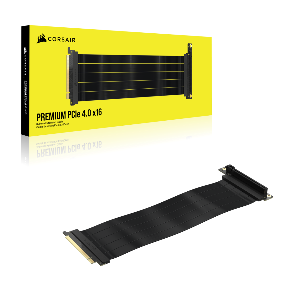 Das CORSAIR Premium PCIe 4.0 x16 Verlängerungskabel bietet die hohe Bandbreite von PCIe 4.0 und erleichtert die vertikale Montage Ihrer GPU in kompatiblen Gehäusen.