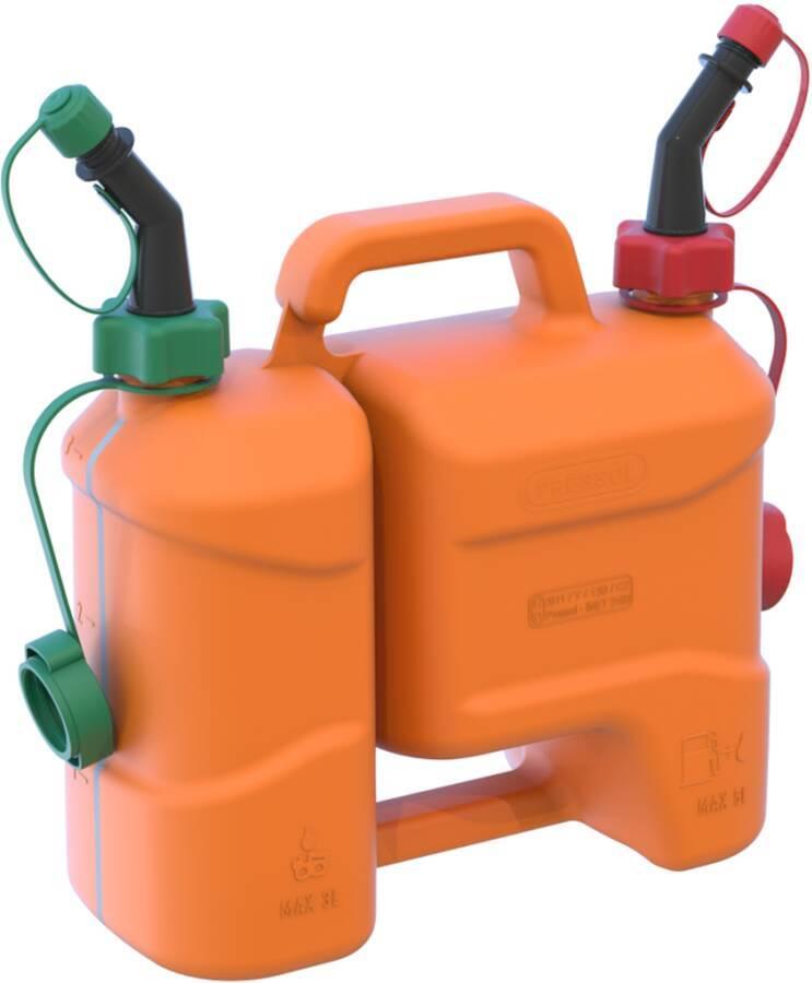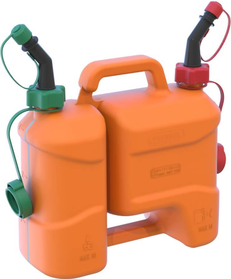 • Pressol Kombi-Kanister 5l Kraftstoff- u.3l Öl- behälter, PE, mit starrem Auslauf (21031)