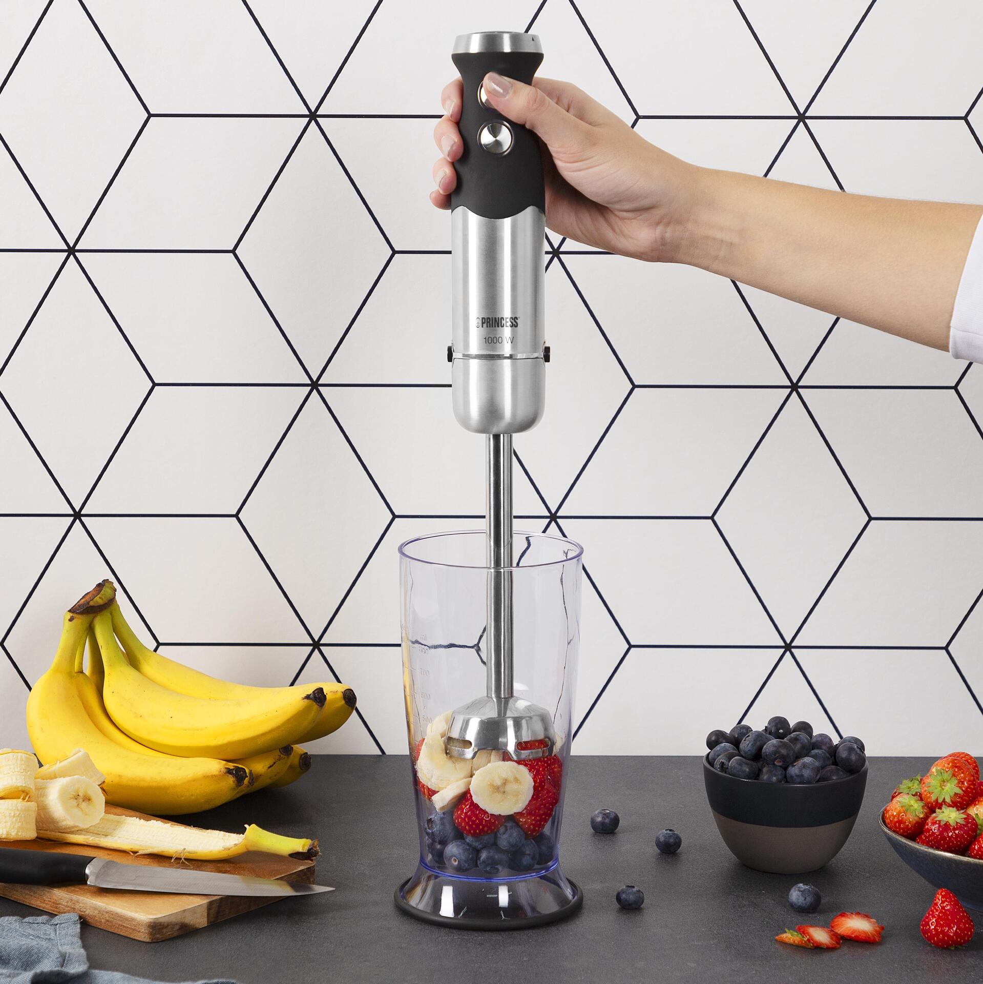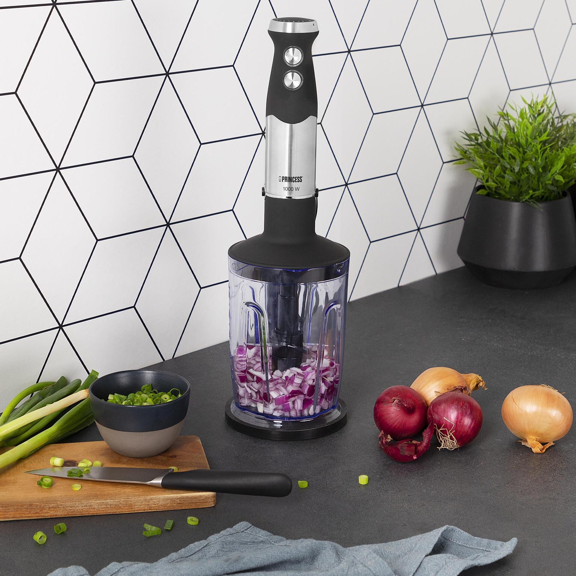 Das extrem leistungsstarke Princess 221221 Stabmixer-Set mit vier Klingen eignet sich perfekt für die Zubereitung von Pestos, Suppen oder Milchshakes. Der Stabmixer hat eine Leistung von 1000 Watt.