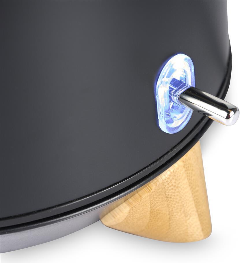 Eleganter Wasserkocher mit 1,7 l Volumen und 360 °-Drehbarkeit. Dank 3000 W Leistung kocht das Wasser sehr schnell. Mit Trockengehschutz und Pegelanzeige. Dekor mit natürlichen ...