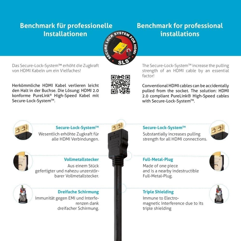 PureLink PureInstall Series - HDMI-Kabel mit Ethernet - HDMI männlich zu HDMI männlich - 15 m - Dreifachisolierung - Schwarz - 4K Unterstützung