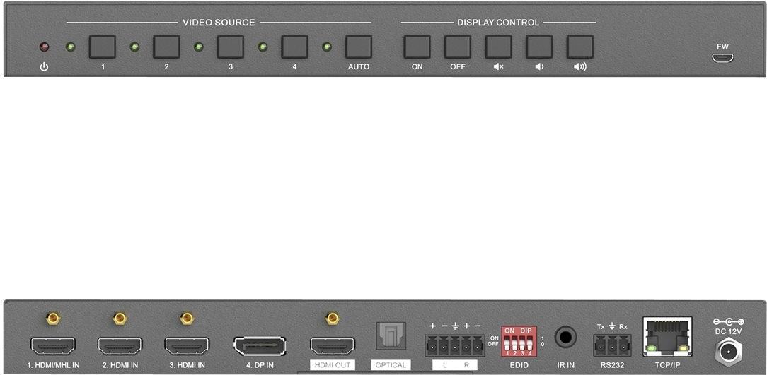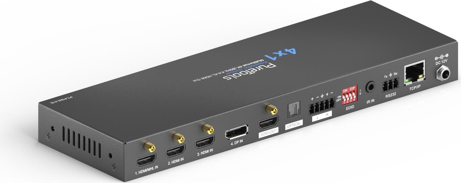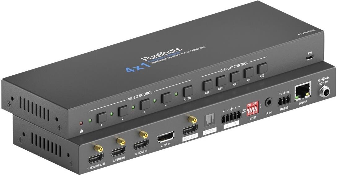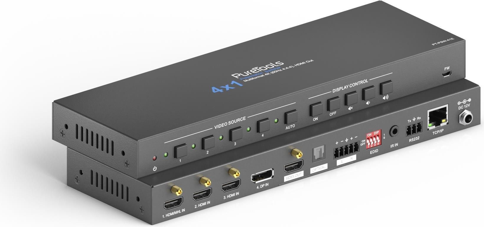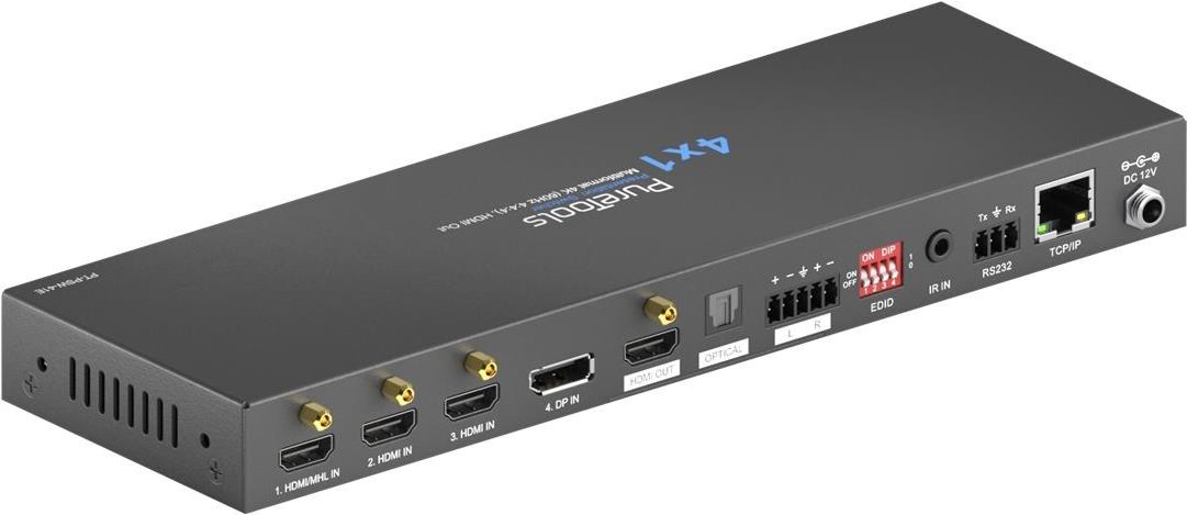 PureLink - PureTools - 4x1 Multiformat Präsentations Switcher - 4K 60Hz 4:4:4 - PureTools - 4x1 Multiformat Präsentations Switcher - 4K 60Hz 4:4:4 - 3 x HDMI und 1 x DP, EDID-Management und automatische Umschaltung mit TMDS-Erkenn (PT-PSW-41E)