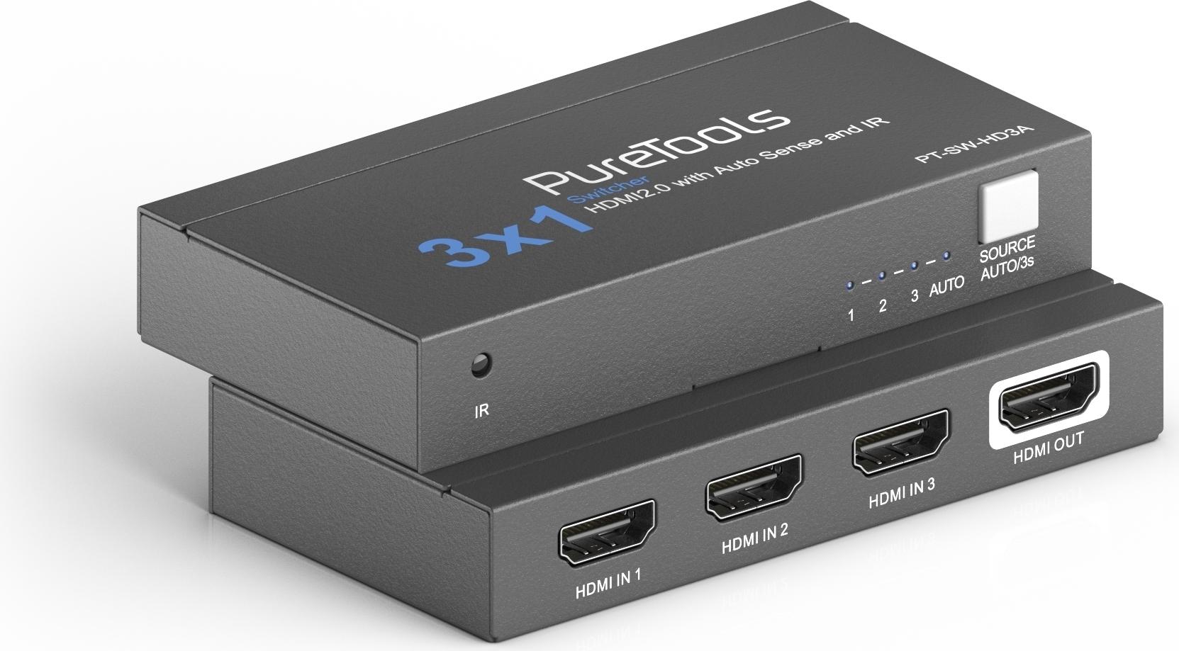 PURELINK PT-SW-HD3A - 3x1 HDMI2.0 Switch 4K 60Hz 4:4:4 HDR 10 Dolby Vision HDCP 2.2 automatische Videoumschaltung Steuerung per IR (PT-SW-HD3A)