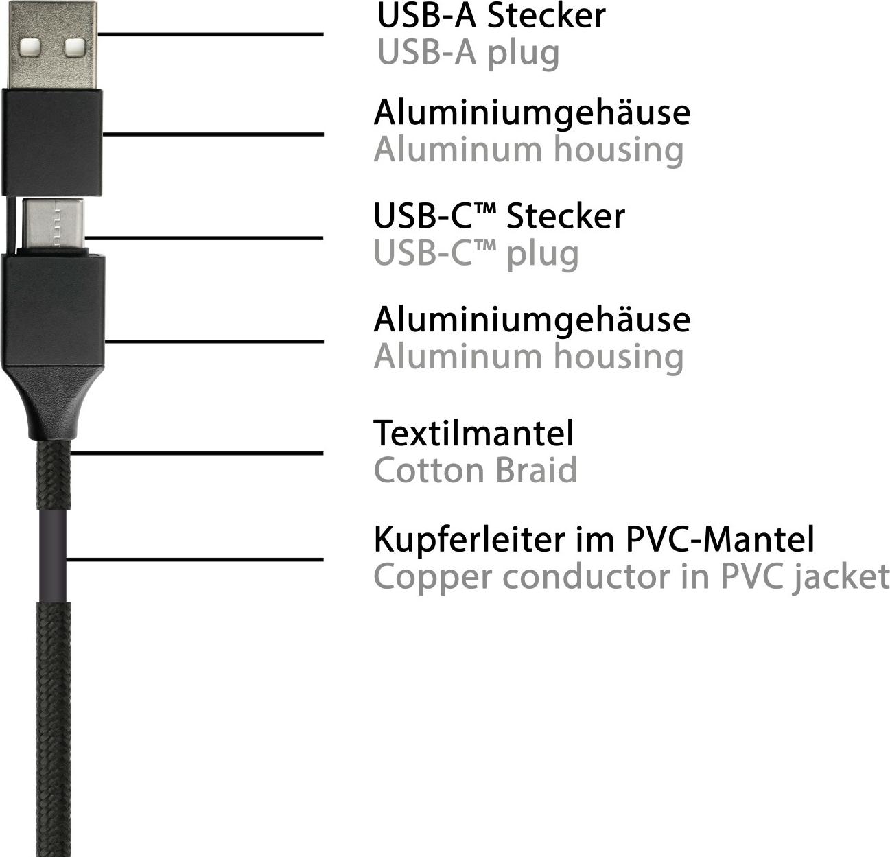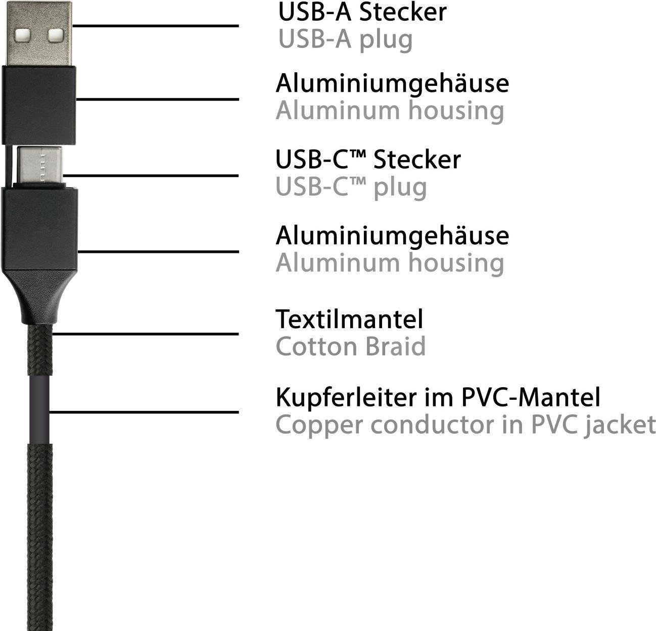 PYTHON 1.00m USB-C Datenkabel PD USB C Stecker auf inkl. USB-A Adapter - Adapter - Digital/Daten - m (PY-USB002S)
