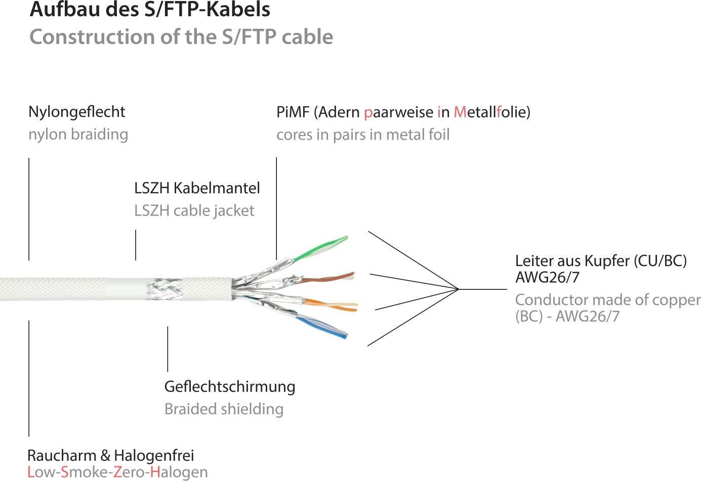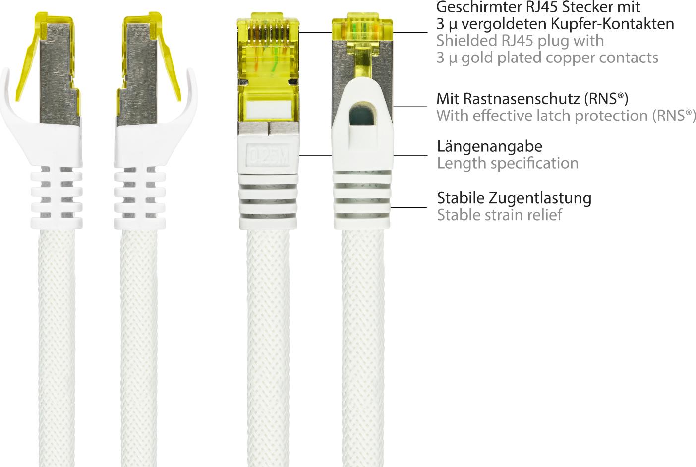 Python Series RJ45 Patchkabel mitCat.7 Rohkabel - Rastnasenschutz (RNS) und Nylongeflecht - S/FTP - PiMF - halogenfrei - 500MHz - OFC - weiß - 0,25m (8070PY-003W)