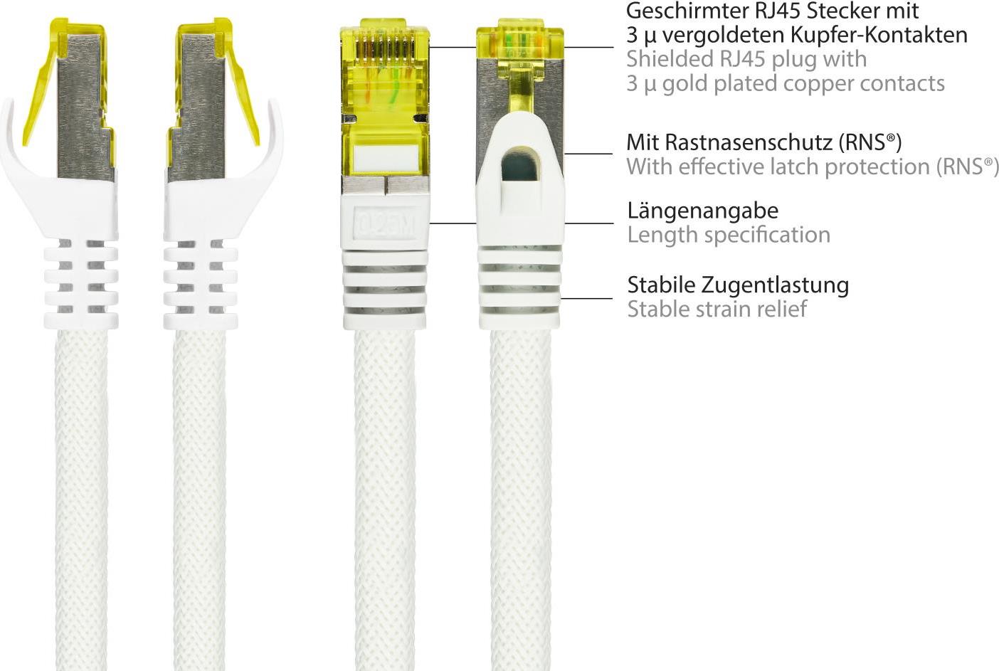 Python Series RJ45 Patchkabel mitCat.7 Rohkabel - Rastnasenschutz (RNS) und Nylongeflecht - S/FTP - PiMF - halogenfrei - 500MHz - OFC - weiß - 2m (8070PY-020W)