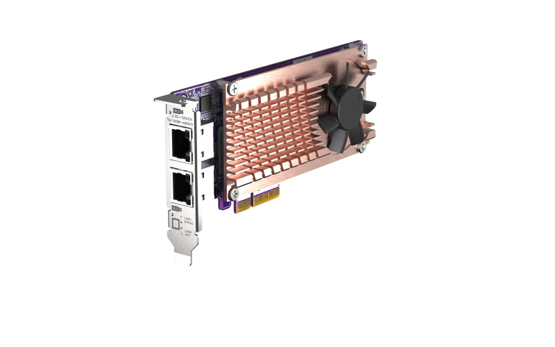Die QM2-2P2G2T erweitert Ihr QNAP NAS um Unterstützung für M.2 SSDs und 2,5GbE Konnektivität. Durch die Kombination von M.2 SSD und 2,5GbE Konnektivität in einer Lösung verbessert die QM2 PCIe Erweiterungskarte die gesamte NAS Leistung und bietet durch SSD Caching gleichzeitig einen erschwinglichen Upgrade-Pfad für den Einsatz von 2,5GbE Netzwerken. Als PCIe-Karte belegt die QM2-2P2G2T keine 3,5-Zoll Laufwerksschächte, sodass Sie Ihr NAS aufrüsten können, ohne Ihre potenzielle Speicherkapazität zu beeinträchtigen.