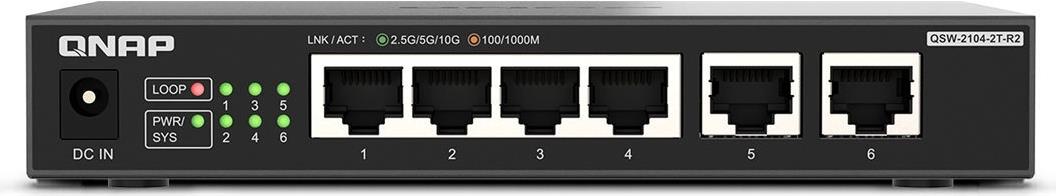 Der QNAP QSW-2104-2T-R2 ist ein vielseitiger Switch, der für nahtlose Konnektivität in kleinen Büros oder Heimbüros entwickelt wurde. Mit seiner kompakten Bauweise bietet er sowohl 10-Gigabit-Ethernet als auch 2,5-Gigabit-Ethernet-Unterstützung über mehrere Ports und ermöglicht so Hochgeschwindigkeitsnetzwerke für anspruchsvolle Anwendungen. Das lüfterlose Design sorgt für einen leisen Betrieb bei gleichbleibender Leistung und macht ihn für den Einsatz in Innenräumen geeignet.