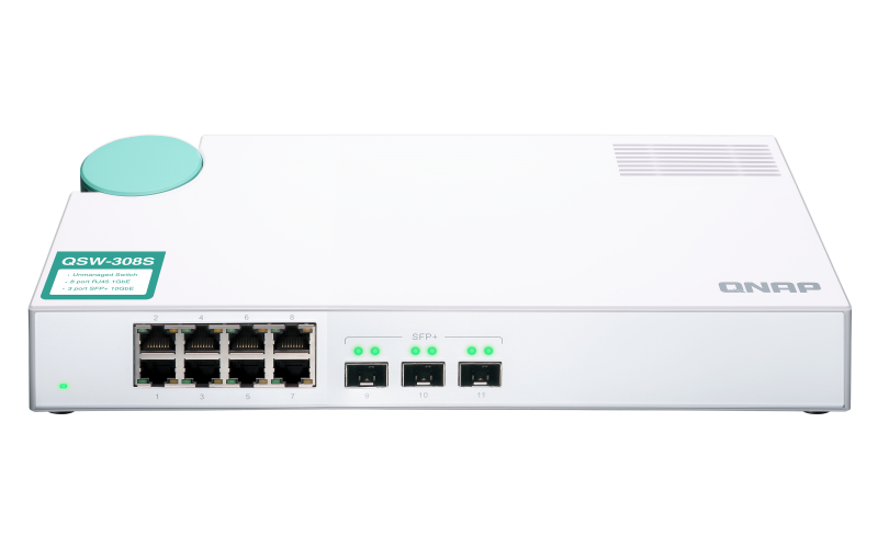 QNAP QSW-308S - Switch - nicht verwaltet - 3 x 10 Gigabit SFP+ + 8 x 10/100/1000 - Desktop