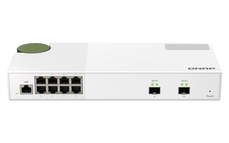 Der QSW-M2108-2S ist ein Layer 2 Web Managed Switch, der mit zwei 10GbE SFP+ Ports und acht 2,5 Gigabit-Ports ausgestattet ist. Der QSW-M2108-2S unterstützt Layer 2 Switching und Netzwerkmanagement über eine benutzerfreundliche Weboberfläche und bietet einen flexiblen Einsatz in hybriden Highspeed-Netzwerkumgebungen sowie eine Netzwerkverwaltungslösung für Einsteiger, die auch von Personen genutzt werden kann, die keine IT-Fachleute sind. Mit hoher Leistung, benutzerfreundlicher Verwaltung und Desktop Formfaktor ermöglicht der QSW-M2108-2S eine günstige Aufrüstung auf 2,5GbE oder 10GbE Netzwerke bei gleichzeitiger Optimierung der Bandbreite und Gewährleistung einer sicheren Netzwerkwartung.
