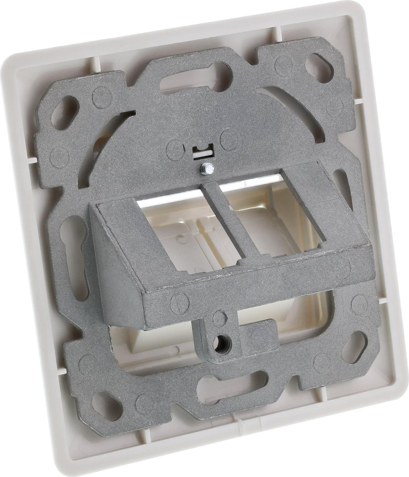 Mit der Snap-In- oder Keystone-Technologie lassen sich strukturierte Lan-Netze mit genau der Anzahl von Ports oder Einsätzen realisieren, die benötigt werden. Diese Lösung ermöglicht somit die Verwendung von Trägern verschiedener Hersteller, um sich besser an die Umgebungsanforderungen bei der Installation anzupassen. Die Universalität dieses Produkts wird durch das Verankerungssystem des Snap-In-Steckers oder des Einsatzes, auch Keystone genannt, gewährleistet.• Rahmenset für 2x RJ45 Bu/LSA Einsatz, Keystone SNAP-In, weiß RAL9010• Befestigungsrahmen mit 80x80mm Abdeckung + Zentralplatte 50x50mm• Zur Aufnahme von Modulen• Mit Staubschutzkappen• Ohne Module