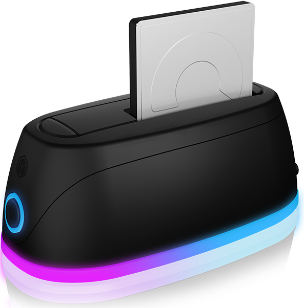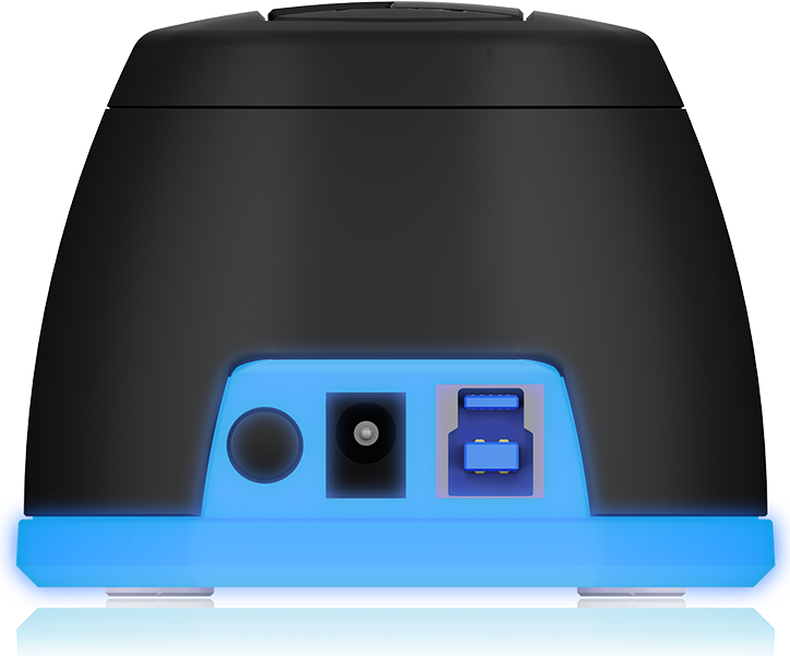 Der hübsch geformte Korpus dieser DockingStation besticht durch einen blauen Lichterkranz und LED Akzente und bietet einen Einsteckplatz für eine 2,5" oder eine 3,5" SSD/HDD. Über den USB 3.0 Hostanschluss sind Datentransferraten von bis zu 5 Gbit/s möglich. Die DockingStation lässt sich dank des USB Type-B auf Type-A oder Type-C Kabels, flexibel mit fast allen gebräuchlichen Computern verbinden.