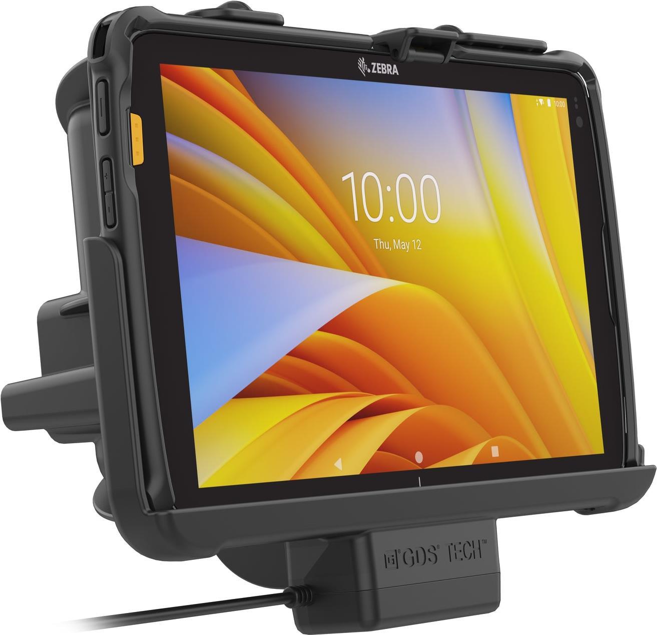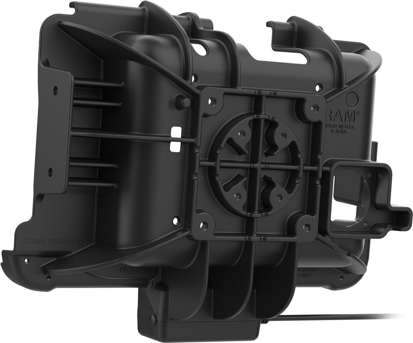 RAM Mounts EZ-Roll'r Halteschale für Zebra ET40/45 (10') Diese RAM Mounts EZ-Roll?r Halteschale ist für Zebra ET40 & ET45 25,40cm (10") Serie mit Zebra Rugged Boot geeignet.Die Halteschale wird durch einen 5.5mm DC-Anschluss mit Strom versorgt und lädt das Gerät in dem Dock auf. Zum Einlegen wird die Unterseite des Gerätes in die Halteschale eingelegt und bis zum Einrasten in die Halteschale gedrückt.Durch die Aussparungen an den Tasten und Anschlüssen können diese weiterhin ohne Einschränkungen genutzt werden.Die Halteschale ermöglicht auch durch die Aussparung der Innenseite, dass die Scanfunktion des Tablets weitergenutzt werden kann.Tablet Zubehör wie z.B. PowerPack Akku können hier zusätzlich untergebracht werden. Die Rückseite der Gerätehalteschale ist für die Aufnahme einer VESA 75x75 mm oder runden Basisplatte (nicht im Lieferumfang enthalten) vorbereitet.Produktmerkmale RAM Mounts RAM-HOL-ZE21PU:Kompatibel mit PowerPack AkkuLeichtes Einlegen und einfache EntnahmeZusätzliche Montageplatte für die Befestigung zusätzlicher Geräte oder ZubehörNur mit Zebra Rugged Boot nutzbarAnschlussbuchse: 5.5mm DCEingangs-Kabellänge: ca. 100 cmZertifikate: RoHS, WEEE, CE & UKCAZusätzlicher Hinweis: Für eine Nutzung ohne Rugged Frame benötigen Sie das Zubehör RAP-INSERT-ZE21U.Abgebildete Geräte gehören nicht zum Lieferumfang.Es wird ausschließlich die RAM-HOL-ZE21PU Halteschale geliefert. (RAM-HOL-ZE21PU)