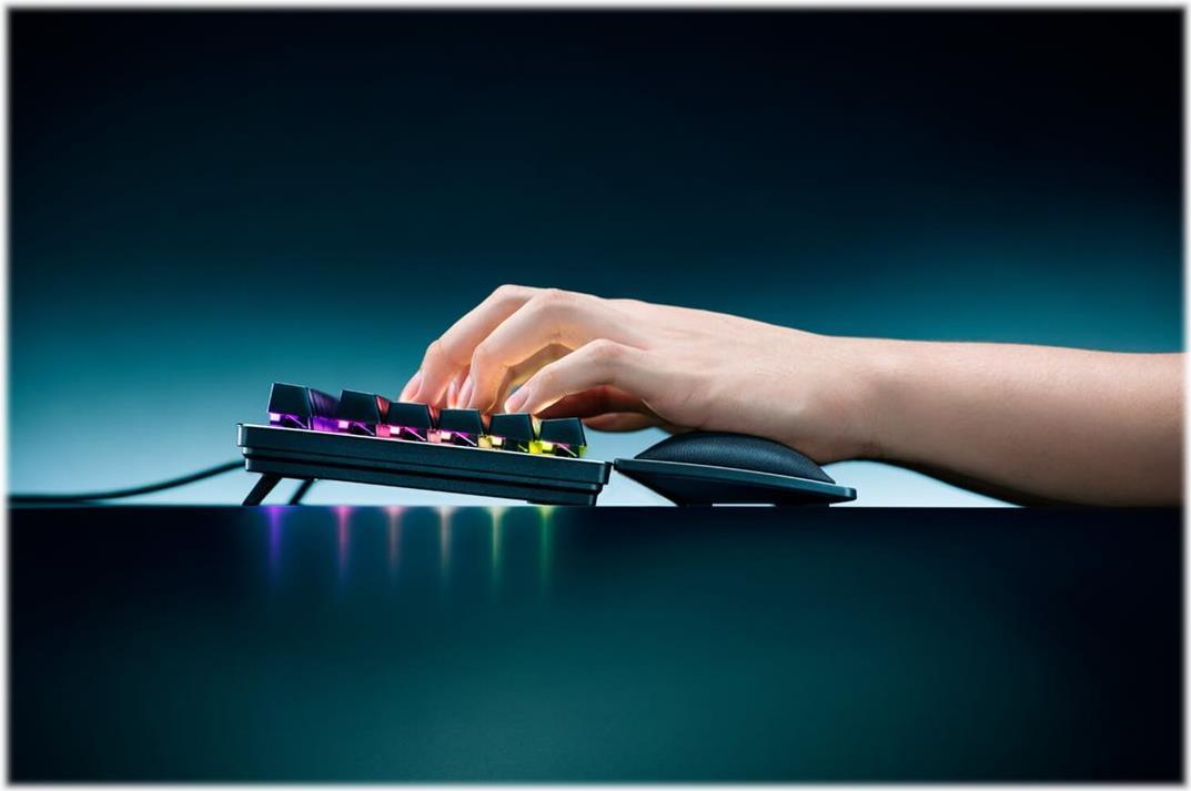 Die mit Kältegel gefüllte Polsterung aus Memory-Schaumstoff der Ergonomischen Handballenauflage Pro von Razer für Tastaturen im Standardformat hat eine mit Kältegel gefüllte Polsterung aus Memory-Schaumstoff, die mit einem Spezialstoff überzogen ist, der Wärme ableitet und die Handgelenke entlastet, damit auch bei langen Gaming-Marathons alles immer schön cool bleibt.