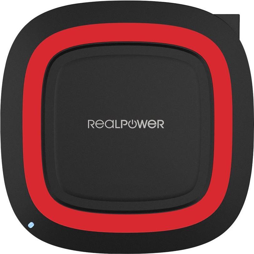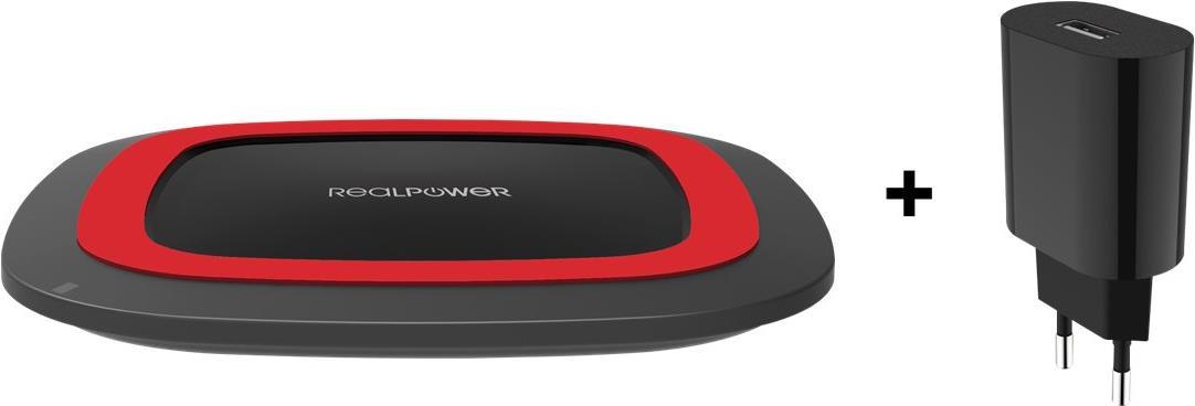REALPOWER FreeCharge10 Schwarz/Rot Kabellose Ladestation fuer Smartphones 10W inklusive Schnellladeadapter (257639)