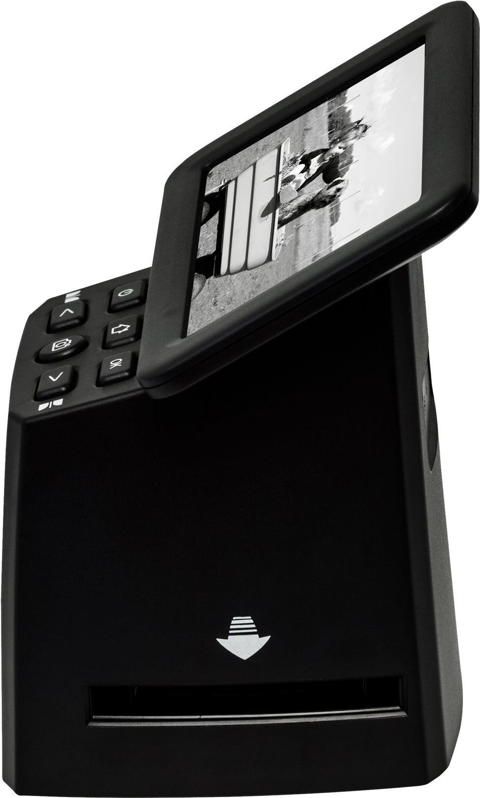 Mit dem Reflecta x33-Scan lassen sich auch große Mengen von Dias und Negativen auf einfache, aber hochwertige Art digitalisieren. Ein CMOS-Sensor mit 15,3 Megapixeln sorgt zusammen mit der Reflecta Bildverbesserungs-Technologie IET für hohe Bildqualität und brillante Farbwiedergabe. Der Scanner verfügt über ein IPS-Display mit 12,7 cm Diagonale und einem großem Betrachtungswinkel, wodurch Auswählen, Scannen und Wiedergeben der Bilder zum wahren Vergnügen wird. Der x33-Scan digitalisiert ein Bild in weniger als zwei Sekunden und speichert es direkt als JPEG-Dateien auf einer SD-Karte. Damit ist er als Stand-Alone-Gerät vollkommen unabhängig von Computern. Die beiliegenden Halter ermöglichen das Scannen von gerahmten Dias mit einer Dicke von bis zu 3,2 mm sowie von 35mm-Filmstreifen mit bis zu sechs Bildern. Die Halter sorgen zudem für eine optimale Planlage und einen schonenden Umgang mit dem wertvollen Filmmaterial.