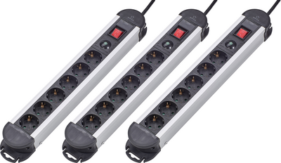 Renkforce 3er Set Überspannungsschutz-Steckdosenleiste 6fach Schwarz Schutzkontakt 614A-CMB-SX3 (614A-CMB-SX3)