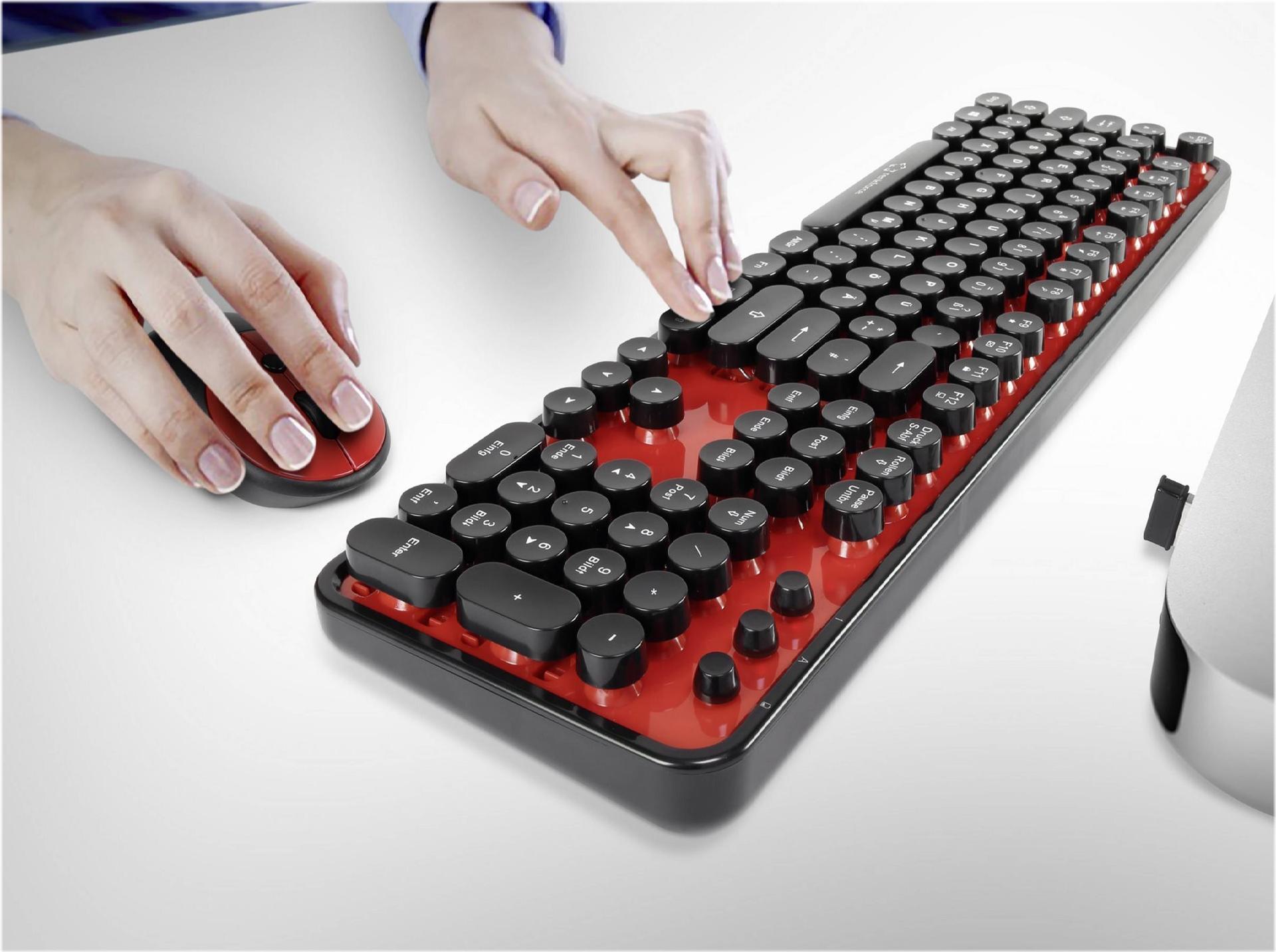 Renkforce Funk-Tastatur,- Maus-Set RF-DS-RETRO Schwarz/Rot (1583220)
