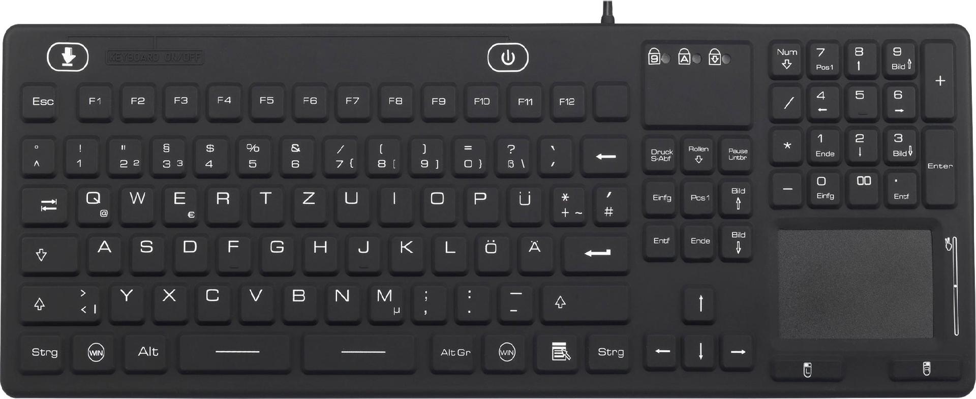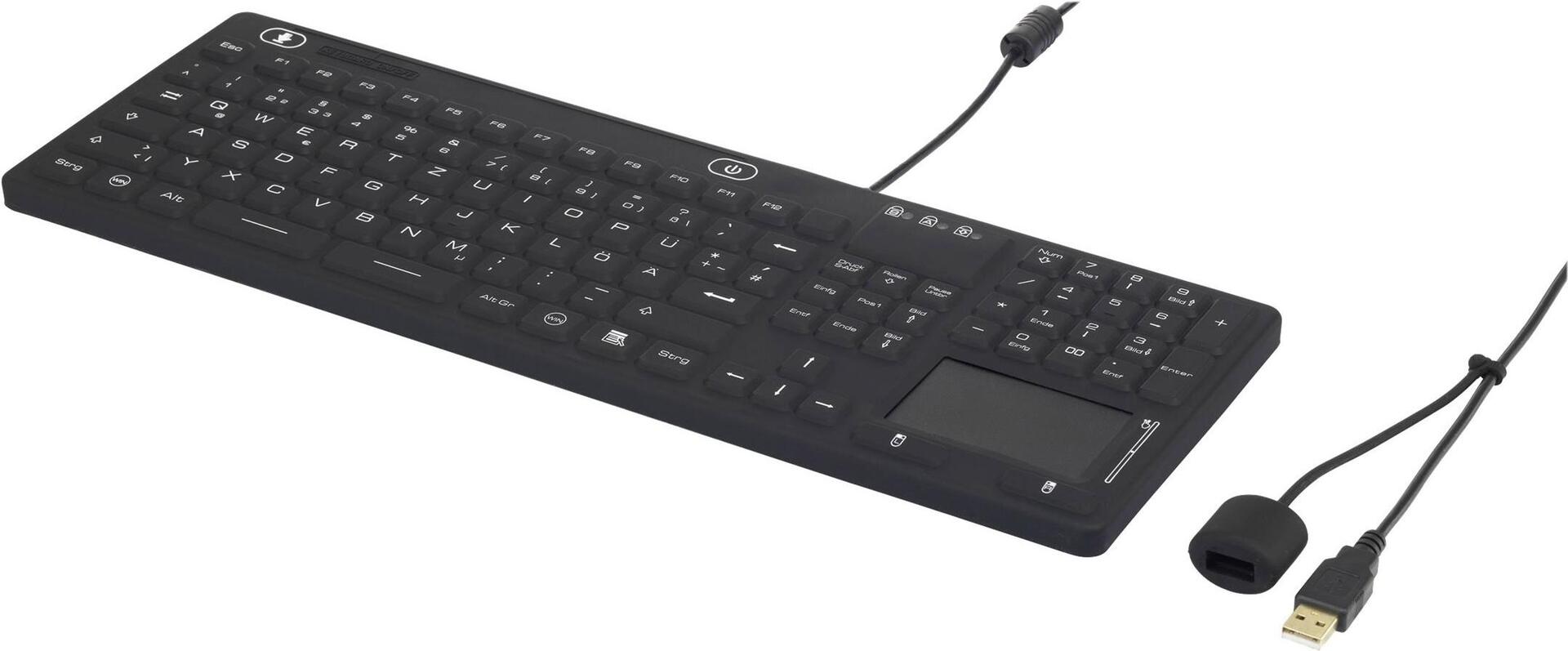 Renkforce IP 68 Industrie USB-Tastatur Schwarz Spritzwassergeschützt, Staubgeschützt, Touch-Oberfläche (iM-IKB110-BK)