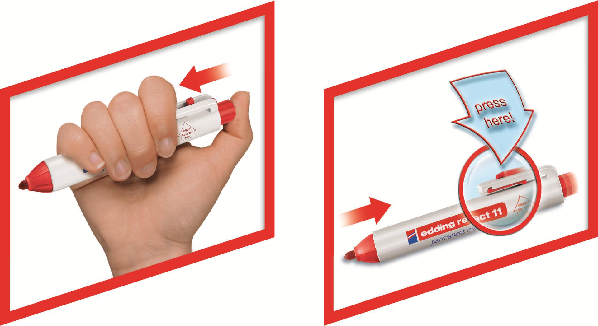 Edding retract 11 - Rot - Rundspitze - Kunststoff - 1,5 mm - 3 mm - Karton - Glas - Leder - Metall - Papier - Kunststoff - Holz (4-11002)