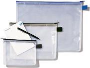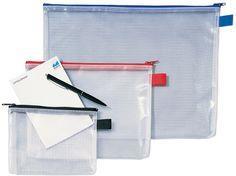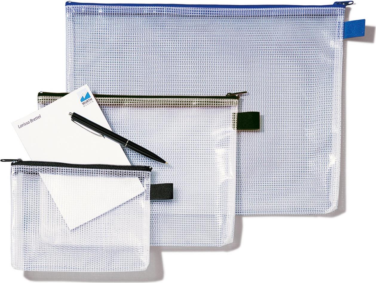 Die praktische Ablagelösung für wichtige Dokumente und Utensilien für unterwegs oder im Büro. Die Mesh-Taschen bestehen aus extra reißfestem PVC-Gewebe und sind in verschiedenen Größen erhältlich. Der Reißverschluss ist farbig abgesetzt.