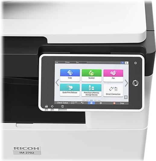 Durch erhebliche Verbesserungen der Qualität und Leistung stellt Ricohs Laser-Drucktechnologie sicher, dass lebendige Farbausgaben schnell mit 27 Seiten pro Minute und 1'200 x 1'200 dpi erstellt werden. Alle Funktionen, einschliesslich der integrierte Duplex und die Papiermagazine, sind von der Vorderseite des Geräts zugänglich. Der IM 2702 ist mit einem erweiterten Controller zur Einbindung von Smart Devices und zum Download und Ausführung von Smart- und Cloud-Anwendungen ausgestattet.
