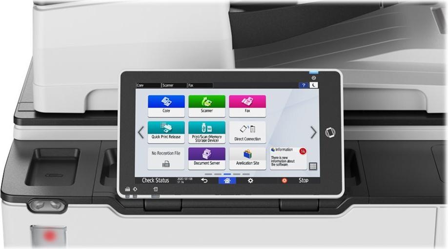 Der IM 7000 optimiert digitale Workflows mit einem umfassenden Sortiment an durchdachten Apps und Lösungen. Teilen und nutzen Sie verschiedene Arten von Informationen über die Cloud-Verbindung des Multifunktionssystems. Die Bedienung des Smart Operation Panels ist intuitiv und identisch mit anderen Multifunktionssystemen aus Ricoh Portfolio.