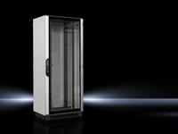 VX IT, geschlossen, für direkte schrankbezogene Klimatisierung. Praxisorientierte Ausrüstung und Vormontage inklusive. 19"-Innenausbau mit 19"-Profilschienen standard für eine Belastbarkeit von bis zu 1.500 kg in verschiedenen Abmessungsvarianten verfügbar.