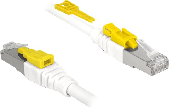 Dieses Netzwerkkabel von Delock dient zur Verbindung verschiedener Netzwerkgeräte, wie z. B. von einem Patchpanel mit einem Switch. Der Stecker lässt sich in der RJ45 Buchse verriegeln, womit das Kabel gegen Herausnehmen geschützt ist. Gleichzeitig ist die Buchse gesperrt und vor unbefugter Benutzung gesichert. So kann der physikalische Zugang zum Netzwerk in sicherheitsrelevanten Bereichen, z. B. in öffentlichen Räumen oder in Rechenzentren, kontrolliert werden. Zum Lösen der Verriegelung wird das beigelegte Werkzeug benötigt.