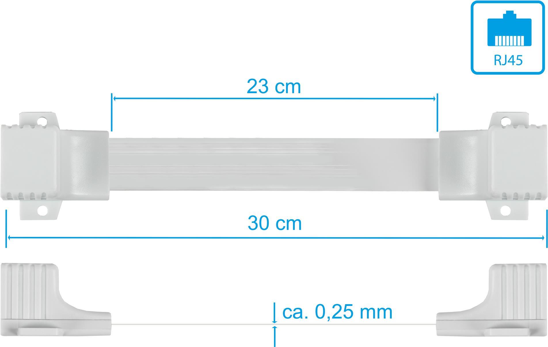 RJ45 Fensterdurchführung High-Quality, weiß, Gesamtlänge inkl. Buchsen 30cm, flexible Länge 23cm, Go (8055-F23QW)
