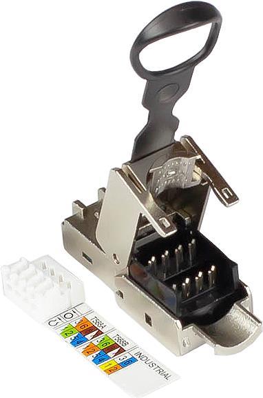 RJ45 Stecker Cat. 6A, werkzeuglos / feldkonfektionierbar, STP geschirmt, Metall, Easy Pull-Out, Good Connections®