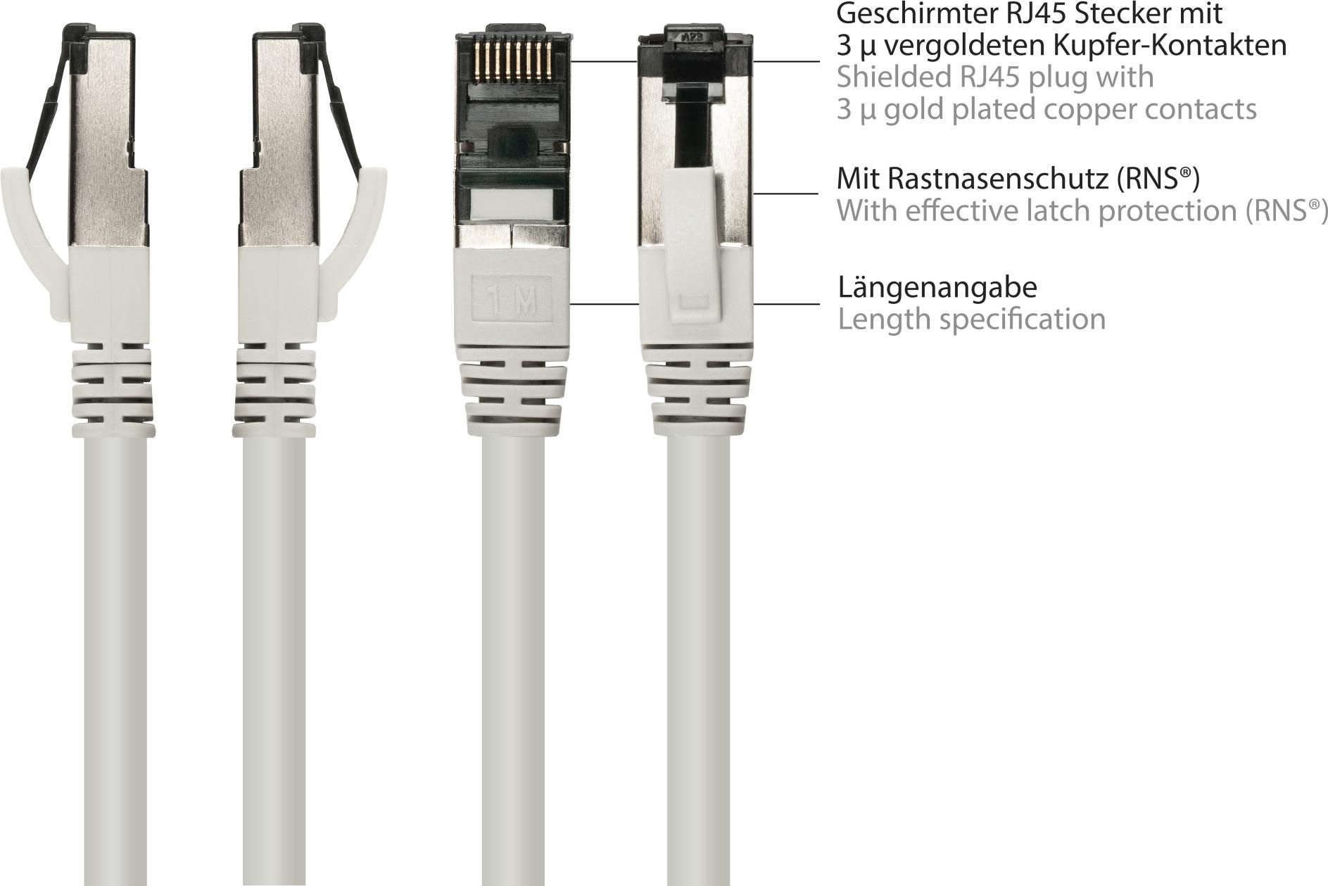 RNS Patchkabel Cat. 8.1, S/FTP, PiMF, halogenfrei (LSZH), CU, AWG26, 2000MHz, 40Gbit/s, grau, 5m, Good Connections