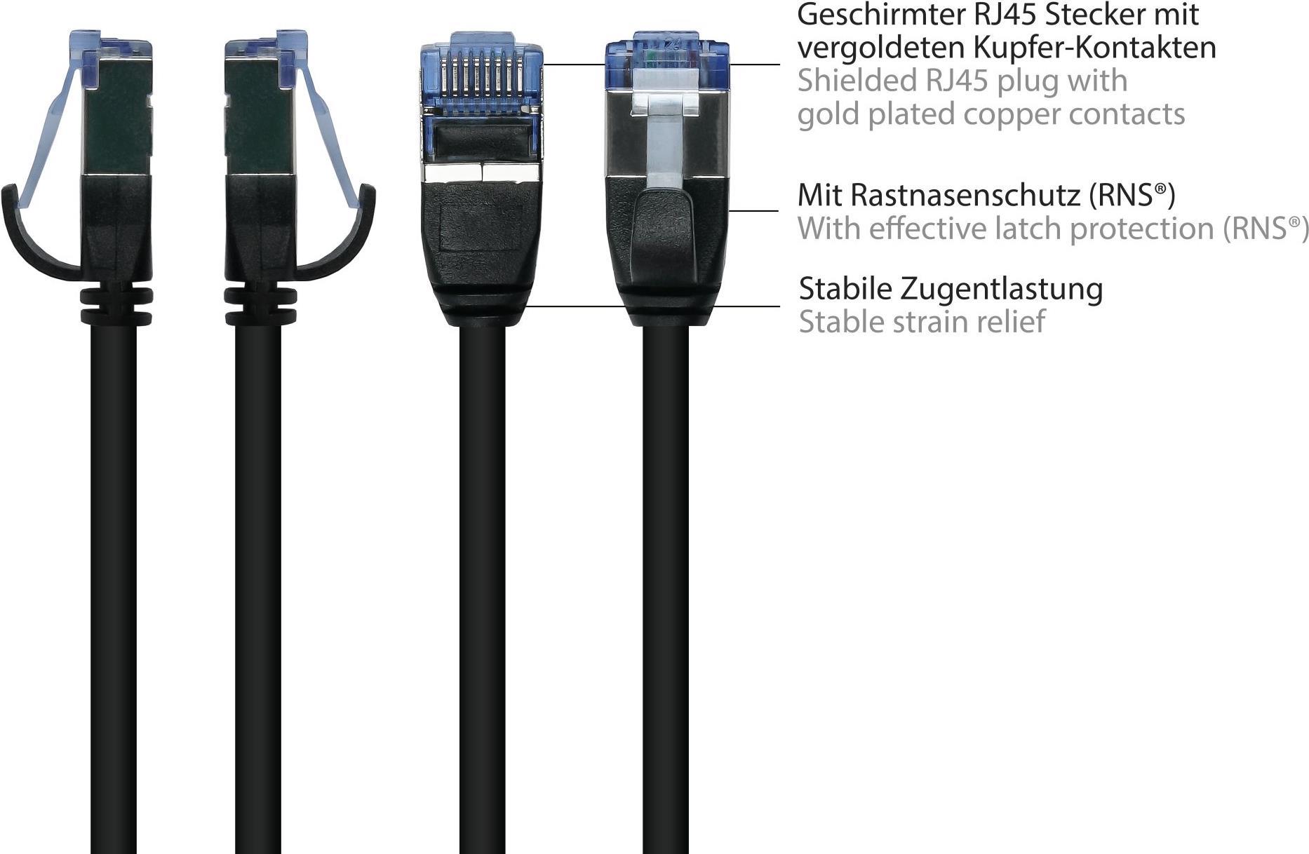 RNS® Patchkabel SlimLine, Cat.6A, U/FTP, PiMF, halogenfrei (LSZH), 500MHz, CU, schwarz, 0,25m, Good Connections® Das flexible, dünne und halogenfreie SlimLine Cat. 6A Patchkabel von Good Connections® mit effektivem ...