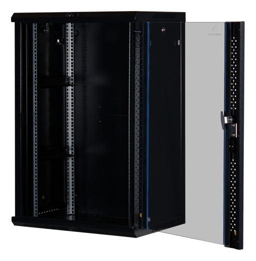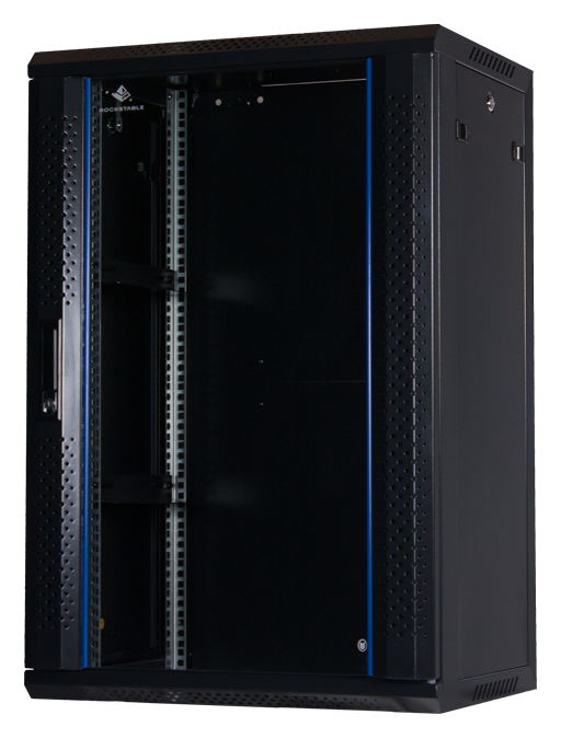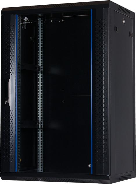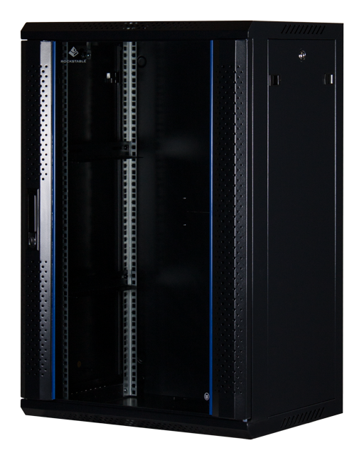 Rockstable 18 HE 19" Wandschrank mit Glastür - Wandmontiertes Regal - 18U - 60 kg - Sperrschloss - Schwarz (RS19-6418)