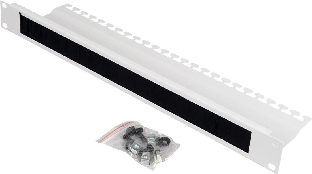 ROLINE 19 Zoll Kabelzuführung mit Bürstenleiste 1 HE grau Die Kabelbürstenleisten werden an den 19"-Profilschienen befestigt. Die Öffnung ist mit einer Bürstenleiste ausgestattet, die das Durchführen von Rangierkabeln schützt und damit ein optimales Kabelmanagement in Ihrem 19" Netzwerk- oder Serverschrank gewährleistet.