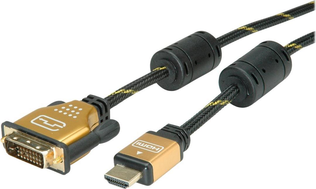 Roline Gold - Videokabel - Dual Link - HDMI / DVI - DVI-D (M) bis HDMI (M) - 2 m - abgeschirmt - Schwarz, Gold - 4K Unterstützung