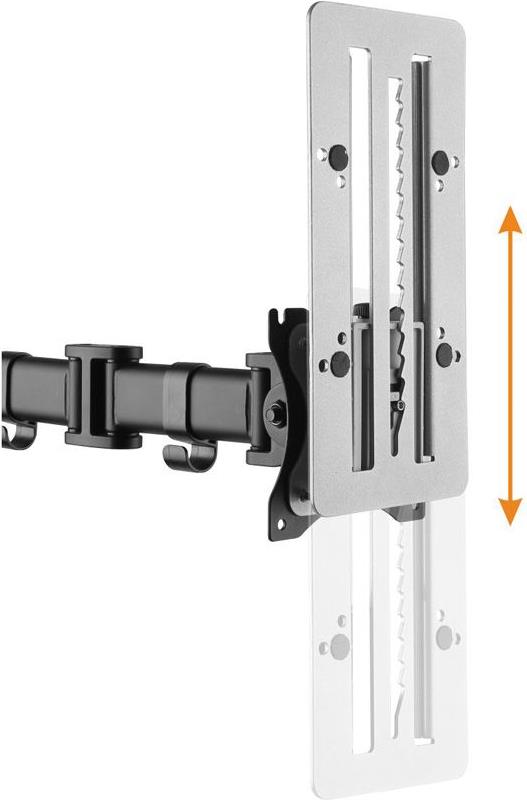 Produkttext[/head]Two functions in one: vertical slide and VESA adapter to extend the VESA dimensions of a monitor or TV holder. Particularly recommended for two monitors arranged next to each other (eg on a monitor bridge), which should be adjusted to the same height.Tower monitorbracketsPerfect to add a higher vertical adjustability (15 cm up and down) to an existing monitor mountEasy to install on most monitor mounts with standard VESA plates (75mm x 75mm / 100mm x 100mm)The tooth track keeps the setting smooth and stableMaximum load up to 8 kg[head]Hauptmerkmale