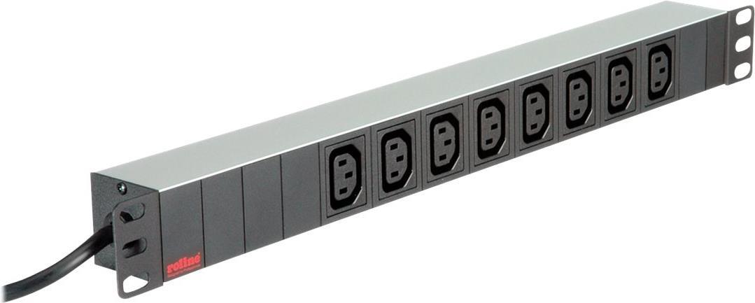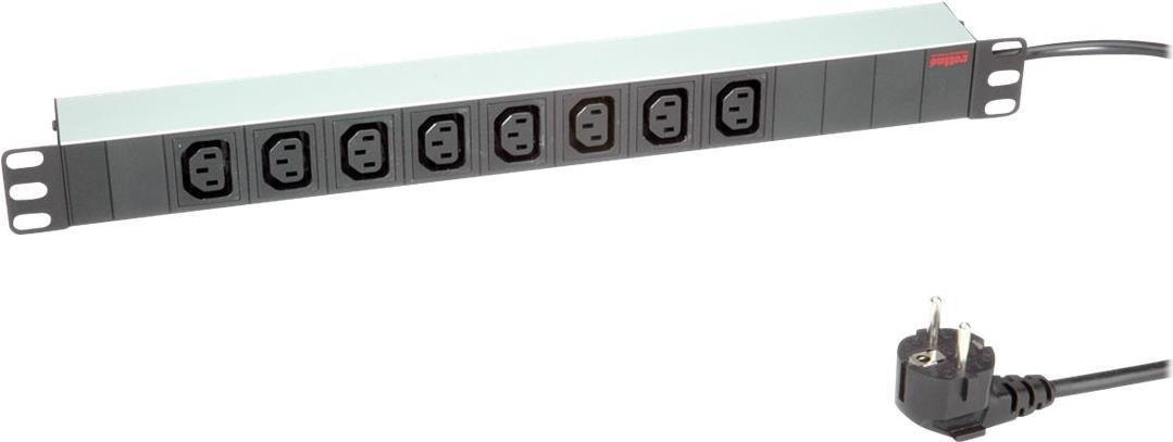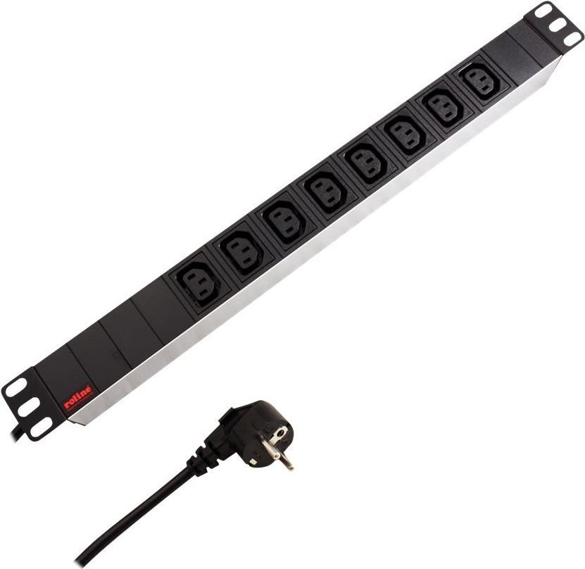 ROLINE 19\"-Steckdosenleiste 8fach C13 + Schutzkontakt-Stecker, Aluminium, 2,0 m (19.07.1628)