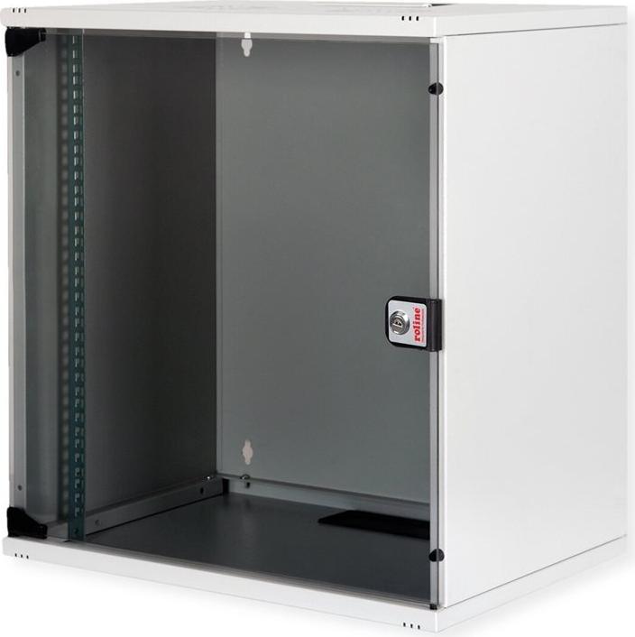 ROLINE 19 Zoll Wandgehäuse Basic 12 HE 540x400 BxT Bausatz grauDie 19" Wandschränke der ROLINE Basic Serie werden im unmontierten Zustand als Flatpack (Bausatz) geliefert. Verfügbar in vier verschiedenen Höheneinheiten und ausgestattet mit einer Vollglastür sowie Kabeleinführungen mit Bürsten an Dach und Boden, sind sie ideal für die Unterverteilung oder den Aufbau eines kleinen bis mittelgroßen Netzwerks geeignet. Im Inneren sind ein Paar galvanisierte 19" Profilschienen mit ablesbaren Höheneinheiten verbaut, die in der Tiefe verstellbar sind. Jeder Schrank besteht aus einer robusten Stahlkonstruktion aus bis zu 1,5 mm starkem Stahlblech und ist elektrostatisch pulverbeschichtet in den Standardfarben Grau (RAL 7035) und Schwarz (RAL 9005) erhältlich. Der Türanschlag kann bei Bedarf gewechselt werden. Die Montage ist dank der beiliegenden Montageanleitung einfach und schnell durchzuführen. Traglast: 60 kg Fronttür aus gehärtetem Glas, abschließbar 1-Punkt-Verriegelung an der Fronttür Dach und Boden mit Kabelzuführung Lüftungsschlitze für passive Be- und Entlüftung Dach mit Austanzung für Lüftermodule IP Schutzklasse: IP20.