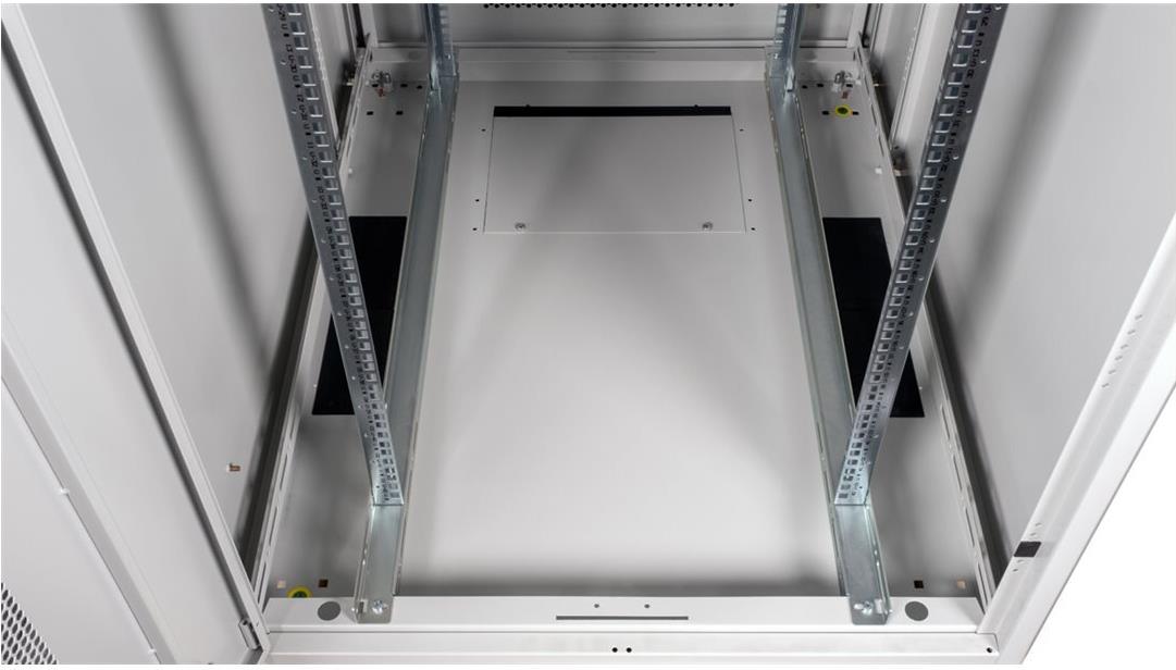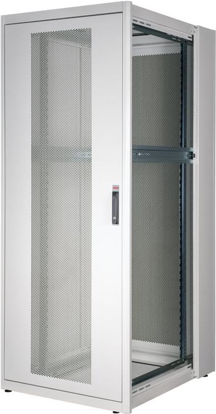 ROLINE 19 Zoll Serverschrank Basic 42 HE 800x1000 BxT perforiert grau Die Netzwerkschränke der ROLINE Basic Serie wurden entwickelt, um einen einfachen und besonders kosteneffizienten Netzwerkausbau zu ermöglichen. Durch strategisch platzierte Kabeleinlässe ist eine mühelose Installation je nach Anwendungsfall gewährleistet. Im Bodenchassis befindet sich der Kabeleinlass, der durch eine verschraubte Abdeckplatte geschützt und im hinteren mittigen Bereich positioniert ist. Bei Schränken ab 800 mm Breite werden zusätzliche Kabeleinlässe mit Kunststoffabdeckung links und rechts hinzugefügt. Diese sind auch im Dach integriert (einmal bei 600 mm Schrankbreite, dreimal bei 800 mm Schrankbreite). Für die Installation eines Lüftermoduls ist das Dachchassis ebenfalls mit einem ausgestanzten Bereich versehen. Im Inneren sind zwei Paar galvanisierte 19"-Profilschienen verbaut, die in beide Richtungen ablesbar sind und sich in der Tiefe verstellen lassen. Sie sind zudem mit zusätzlichen Tiefenstreben im Schrank verbunden. Jeder Schrank besteht aus einer robusten Stahlkonstruktion mit einer Materialstärke von bis zu 1,5 mm Stahlblech. Die Farbgebung erfolgt mittels elektrostatischer Pulverbeschichtung in den Standardfarben Grau (RAL 7035) und Schwarz (RAL 9005). Abnehmbare Seiten- und Rückwände sowie eine abschließ- und abnehmbare Fronttür verbessern die Zugänglichkeit. Ein Wechsel des Türanschlags ist möglich. Zudem sind die Schränke aufgrund ihrer zerlegbaren Konstruktion bei Bedarf vollständig demontierbar.