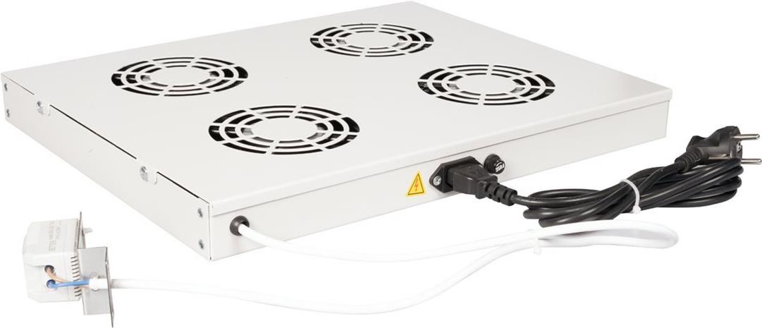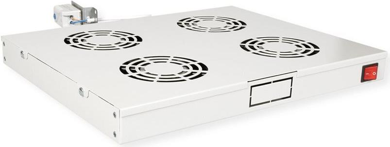 ROLINE 19 Zoll Rackmount-Lüftereinheit 4 Lüfter Thermostat grau Die ROLINE Rackmount-Lüftereinheiten können flexibel in jedem 19"-Schrank eingesetzt werden. Jede Lüftereinheit wird mit zwei Sets von Montagewinkeln geliefert. Mit dem ersten Satz können Sie die Lüftereinheit an jeder beliebigen Höheneinheit Ihres Netzwerkschrankes vertikal befestigen. Das zweite Set ermöglicht Ihnen die Installation für den horizontalen Einbau. Ein Schalter sowie ein regelbares Thermostat bieten optimale Anpassungsmöglichkeiten. Das Modell ist in den Standardfarben Grau (RAL 7035) und Schwarz (RAL 9005) erhältlich.