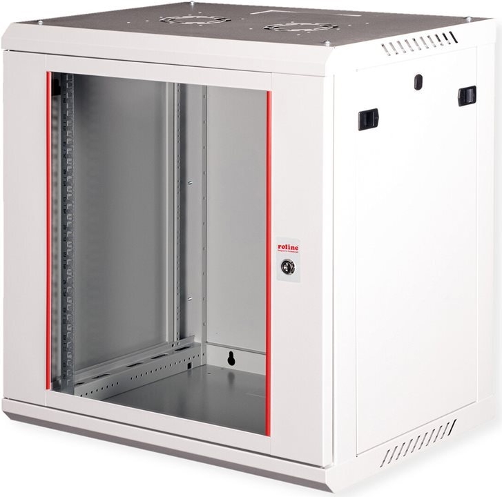 ROLINE 19 Zoll Wandgehäuse Basic Plus mit 450 mm Tiefe Die Wandgehäuse der ROLINE Basic Plus Serie wurden speziell für eine flexible Netzwerkverkabelung konzipiert. Diese Serie stellt eine ideale Balance zwischen der ROLINE PRO- und der ROLINE Basic-Serie dar. Das Bodenblech und das Dach sind mit einem ausgestanzten Kabeleinlass ausgestattet. Zusätzlich wird die Aufnahme eines Lüftermoduls durch einen ausgestanzten Bereich im Dach ermöglicht. Im Inneren ist ein Paar galvanisierte Profilschienen mit Höheneinheiten von 483 mm (19") verbaut, die zusätzlich in der Tiefe verstellbar sind. Die robusten Stahlkonstruktionen der Schränke bestehen aus einem starken Stahlblech und sind in Grau (RAL 7035) oder Schwarz (RAL 9005) pulverbeschichtet erhältlich. Die Seitenwände sind mit einem Schnellverschluss versehen und abnehmbar, was die Zugänglichkeit verbessert. Optional kann auch ein Schloss in den Seitenwänden verbaut werden. Die Wandmontage erfolgt in zwei einfachen Schritten: Zuerst wird die Rückwand an die Wand geschraubt und dann mit dem Gehäuse verbunden. Optional können Nivellierfüße oder Rollen verwendet werden, um die Schränke freistehend zu nutzen. • Traglast: 80 kg • Fronttür aus gehärtetem Glas, abschließbar • Seitenteile sind mit einem Schnellverschluss versehen und abnehmbar • Dach mit Ausstanzung für Lüftermodule • Kabelzuführung an Dach und Boden möglich • Lüftungsschlitze für passive Be- und Entlüftung • Inkl. Befestigungsmaterial • Schutzklasse: IP20 • Lieferung: montiert.