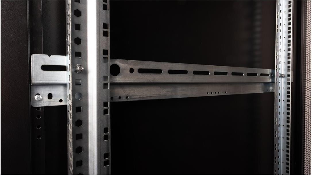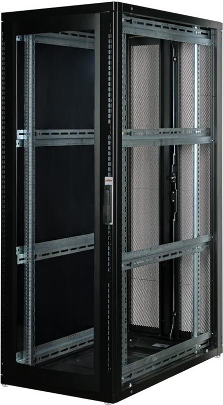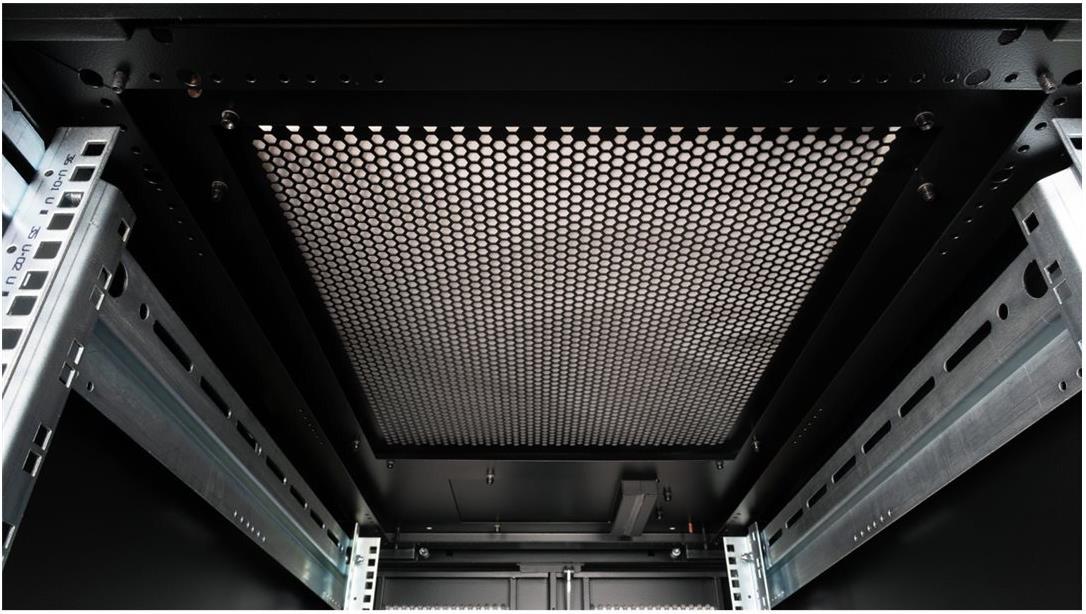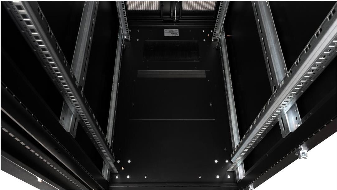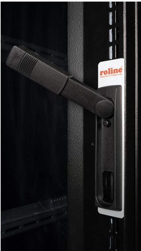 ROLINE 19 Zoll Serverschrank Pro 36 HE 600x1000 BxT schwarz Plexiglas Die Serverschränke der ROLINE Pro Serie wurden speziell für eine komfortable und flexible Netzwerkverkabelung entwickelt. Seitlich im Dach und Boden (ab 800 mm Schrankbreite) befinden sich Einlässe mit Bürsten, ein aufschiebbarer Einlass mit Moosgummidichtung sowie ein zusätzlicher Bürsteneinlass im Bodenchassis, die vielseitige Einsatzmöglichkeiten bieten. Perforierte Einflügel-Fronttüren und doppelflügelige Rücktüren, jeweils mit Schwenkgriff und Profil-Halbzylinder, sorgen für eine verbesserte Luftzirkulation. Das Dach verfügt über eine perforierte Abdeckung, die eine einfache Installation eines Lüftermoduls ermöglicht. Im Inneren des Schranks sind zwei Paar galvanisierte 19"-Profilschienen montiert, die mit in beide Richtungen ablesbaren Höheneinheiten ausgestattet und in der Tiefe verstellbar sind. Zusätzlich sind sie mit Tiefenstreben verbunden. Jeder Schrank besteht aus einer robusten Stahlkonstruktion mit einer Materialstärke von bis zu 2,0 mm. Die Schränke sind elektrostatisch pulverbeschichtet und in den Standardfarben Grau (RAL 7035) und Schwarz (RAL 9005) erhältlich. Modular abschließ- und abnehmbare Seitenwände (ab 42HE horizontal geteilt) und Türen verbessern die Zugänglichkeit. Der Türanschlag kann ebenfalls gewechselt werden. Die komplette Konstruktion ist zerlegbar, weshalb die Schränke bei Bedarf vollständige demontierbar wären.