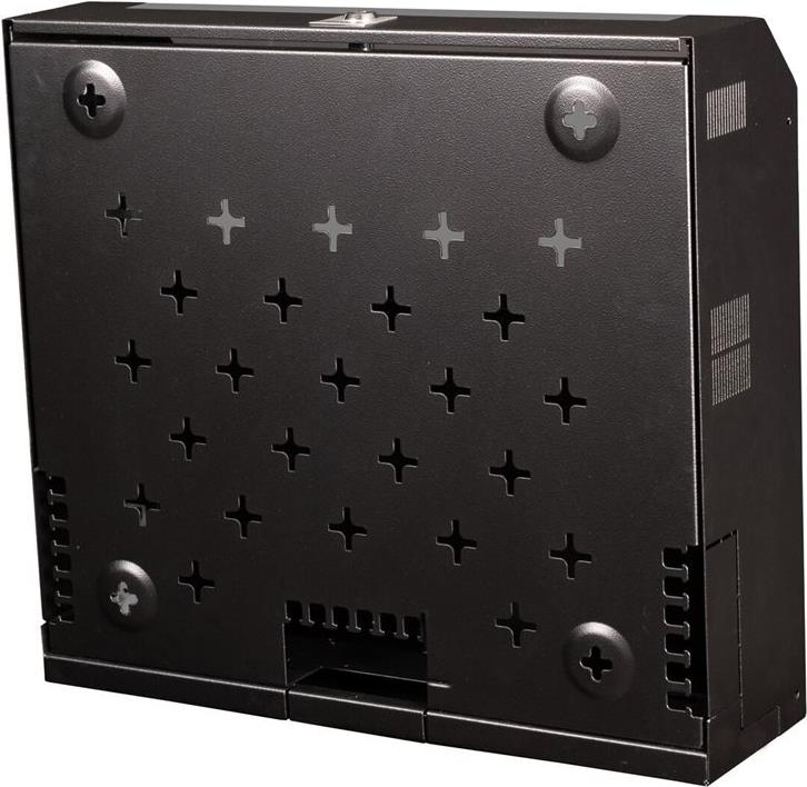 ROLINE 19 Zoll Wandgehäuse Basic 5 HE kurz schwarz Die Wandgehäuse der ROLINE Basic Serie sind perfekt zur Unterbringung von aktiven und passiven Komponenten geeignet. Sie heben sich durch eine einfache und vor allem zeitsparende Installation von vielen anderen Gehäusen ab. Dank ihres modernen Designs fügen sie sich harmonisch in jedes Büro oder zuhause ein. Das Gehäuse bietet zwei separate Montagemöglichkeiten: An der Vorderseite befindet sich eine rotierbare vertikale 3HE-Schiene, die alternativ auch horizontal oder schräg positioniert werden kann. An der Rückseite ist eine fest angebrachte horizontale 2HE-Schiene, die sich beispielsweise für passive Netzwerkkomponenten eignet. Die ausgestanzten Montagelöcher im gesamten unteren Gehäusebereich ermöglichen zudem die Installation von nicht 19" fähigen Komponenten wie Switche und Routern. Alternativ kann hierfür eine Montageplatte angebracht werden. • Traglast: 30 kg • Gehäuse kann bis zu 80° geöffnet werden • 1-Punkt-Verriegelung • Integrierter Türstopper-Mechanismus • 19 Zoll Einbaumöglichkeiten: 3HE vertikal (rotierbar), 2HE horizontal (fix) • Max. Einbautiefe: 265 mm • Vorgestanzte Ausbrüche zur Kabelführung • Lüftungsschlitze für passive Be- und Entlüftung • Bodenblech mit ausgestanzten Montagelöcher • IP Schutzklasse: IP20.