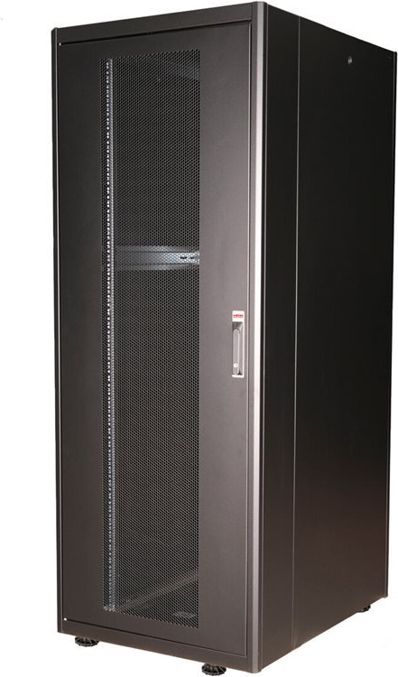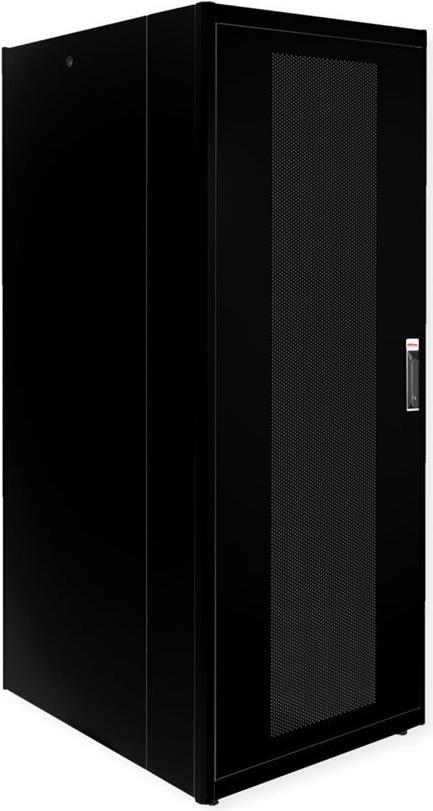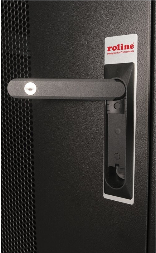 ROLINE 19 Zoll Serverschrank Basic 42 HE 800x1000 BxT perforiert schwarzDie Netzwerkschränke der ROLINE Basic Serie wurden entwickelt, um einen einfachen und besonders kosteneffizienten Netzwerkausbau zu ermöglichen. Durch strategisch platzierte Kabeleinlässe ist eine mühelose Installation je nach Anwendungsfall gewährleistet. Im Bodenchassis befindet sich der Kabeleinlass, der durch eine verschraubte Abdeckplatte geschützt und im hinteren mittigen Bereich positioniert ist. Bei Schränken ab 800 mm Breite werden zusätzliche Kabeleinlässe mit Kunststoffabdeckung links und rechts hinzugefügt. Diese sind auch im Dach integriert (einmal bei 600 mm Schrankbreite, dreimal bei 800 mm Schrankbreite). Für die Installation eines Lüftermoduls ist das Dachchassis ebenfalls mit einem ausgestanzten Bereich versehen. Im Inneren sind zwei Paar galvanisierte 19"-Profilschienen verbaut, die in beide Richtungen ablesbar sind und sich in der Tiefe verstellen lassen. Sie sind zudem mit zusätzlichen Tiefenstreben im Schrank verbunden. Jeder Schrank besteht aus einer robusten Stahlkonstruktion mit einer Materialstärke von bis zu 1,5 mm Stahlblech.Die Farbgebung erfolgt mittels elektrostatischer Pulverbeschichtung in den Standardfarben Grau (RAL 7035) und Schwarz (RAL 9005). Abnehmbare Seiten- und Rückwände sowie eine abschließ- und abnehmbare Fronttür verbessern die Zugänglichkeit. Ein Wechsel des Türanschlags ist möglich. Zudem sind die Schränke aufgrund ihrer zerlegbaren Konstruktion bei Bedarf vollständig demontierbar.