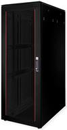 ROLINE 19 Zoll Netzwerkschrank Pro 42 HE 800x1200 BxT Glastür schwarz Die Netzwerkschränke der ROLINE Pro Serie wurden entwickelt, um eine besonders komfortable und flexible Netzwerkverkabelung zu ermöglichen. Mit Bürsteneinlässen im Dach- und Bodenbereich (ab 26HE und 800 mm Schrankbreite), einem aufschiebbaren Einlass im Bodenchassis mit Moosgummidichtung sowie Bürstenleisten ober- und unterhalb der Rücktür (ab 26HE) bieten sie vielseitige Einsatzmöglichkeiten für verschiedene Anwendungsszenarien. Vertikale Kabelführungskanäle mit Blende, installiert neben den Profilschienen (ab 800 mm Schrankbreite), vervollständigen das Design. Ein abgesetzter, abnehmbarer Deckel mit Lüftungsschlitzen verbessert die Luftzirkulation und ermöglicht eine einfache Installation eines Lüftermoduls. Die Lüftereinheit kann von oben ein- und ausgebaut werden, ohne dass die Komponenten im Inneren betroffen sind. Im Inneren sind zwei Paar galvanisierte 19"-Profilschienen verbaut, die in beide Richtungen ablesbar und in der Tiefe verstellbar sind. Sie sind zudem mit zusätzlichen Tiefenstreben im Schrank verbunden. Jeder Schrank besteht aus einer robusten Stahlkonstruktion mit einer Materialstärke von bis zu 1,5 mm Stahlblech. Die Farbgebung erfolgt mittels elektrostatischer Pulverbeschichtung in den Standardfarben Grau (RAL 7035) und Schwarz (RAL 9005). Modular abnehmbare Seitenwände und Türen verbessern die Zugänglichkeit. Ein Wechsel des Türanschlags ist möglich. Die Schränke sind bei Bedarf auch vollständig zerlegbar.