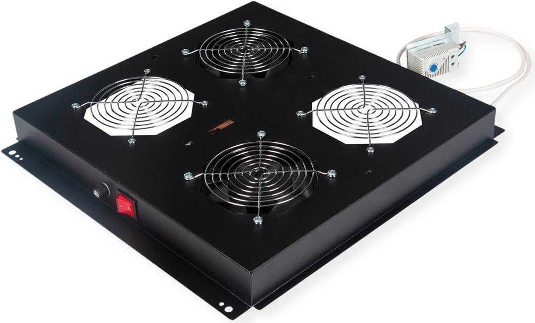 ROLINE 19 Zoll Dach-Lüftereinheit 2 Lüfter schwarz Die Dachlüftereinheiten sind kompatibel mit allen montierten Wandgehäusen der ROLINE Pro Serie, sowie mit allen unmontierten Netzwerk- und Serverschränken (-EC). Sie lassen sich schnell und einfach im Dachmodul installieren. Ein Schalter und ein einstellbares Thermostat bieten optimale Anpassungsmöglichkeiten. Das Modell ist in den Standardfarben Grau (RAL 7035) und Schwarz (RAL 9005) erhältlich.