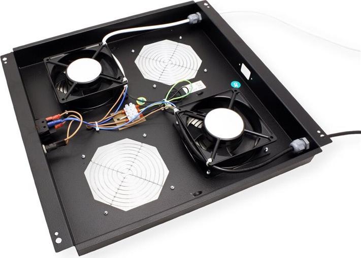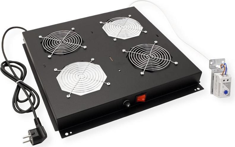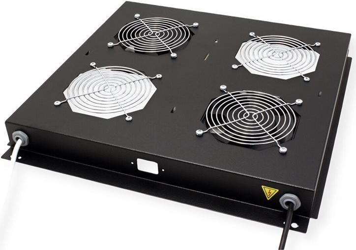 ROLINE 19 Zoll Dach-Lüftereinheit 2 Lüfter schwarzDie Dachlüftereinheiten sind kompatibel mit allen montierten Wandgehäusen der ROLINE Pro Serie, sowie mit allen unmontierten Netzwerk- und Serverschränken (-EC). Sie lassen sich schnell und einfach im Dachmodul installieren. Ein Schalter und ein einstellbares Thermostat bieten optimale Anpassungsmöglichkeiten. Das Modell ist in den Standardfarben Grau (RAL 7035) und Schwarz (RAL 9005) erhältlich.